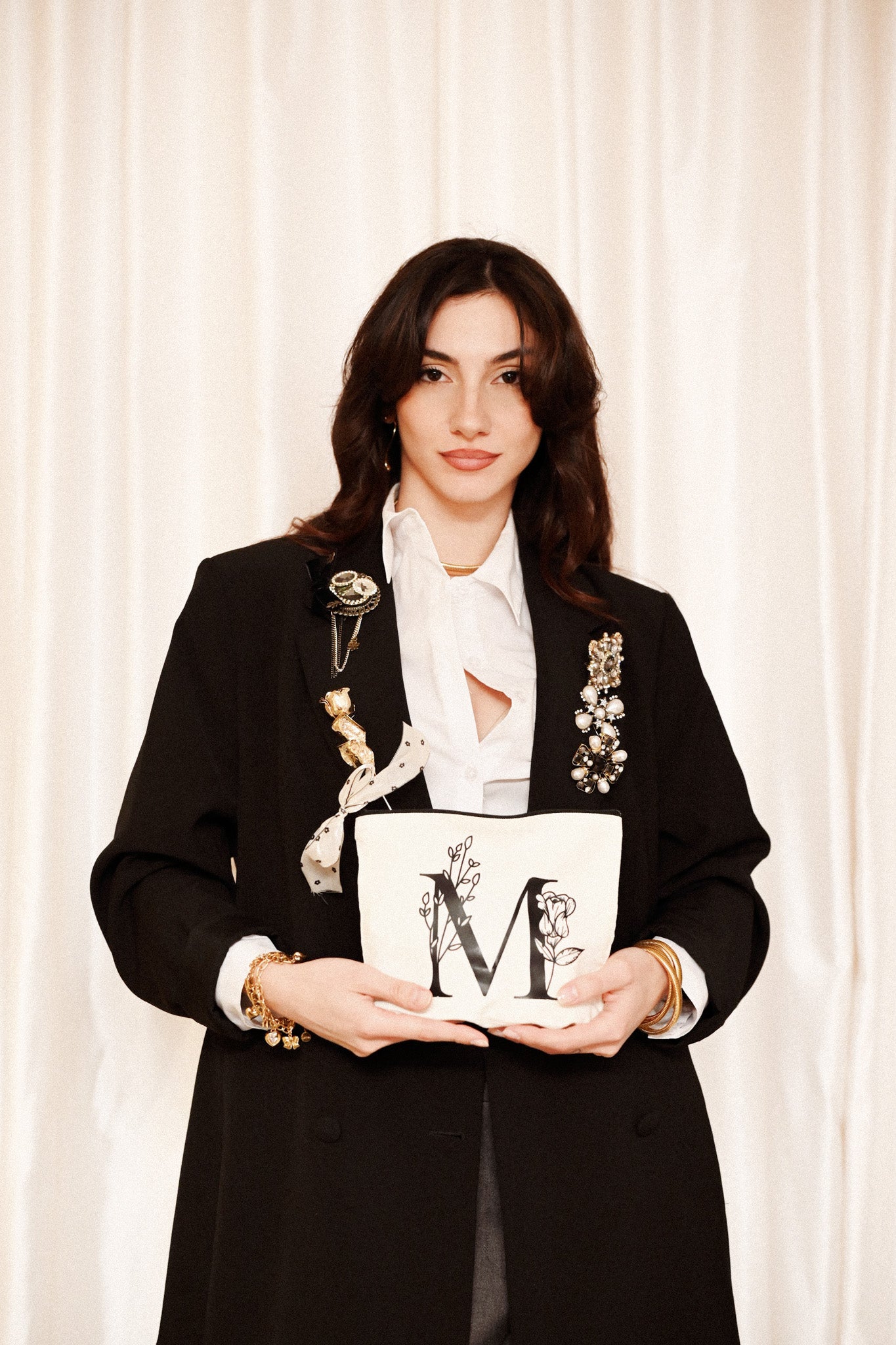 Le nostre pochette personalizzate sono realizzate in 100% cotone di alta qualità, perfette per custodire piccoli tesori o accompagnarti con stile in ogni momento della giornata.