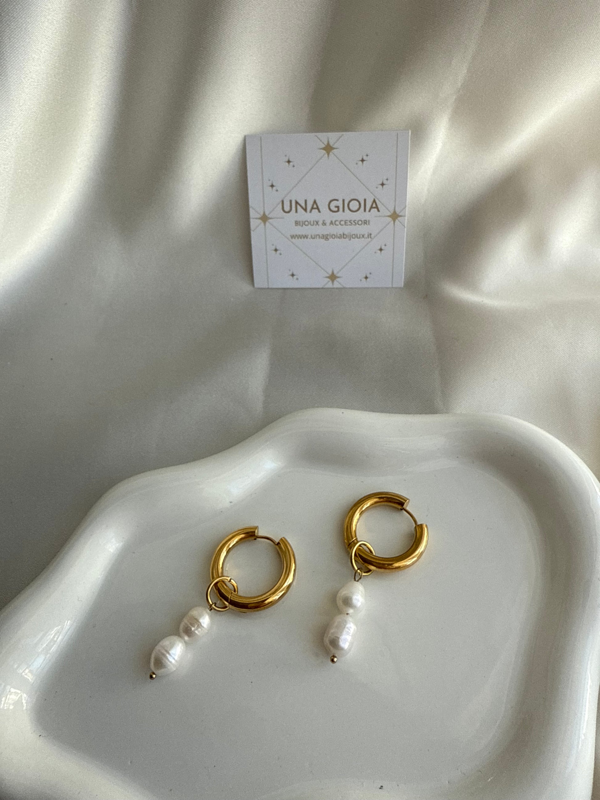 Cerchi in acciaio inox con ciondolonremovinile di perle di fiume