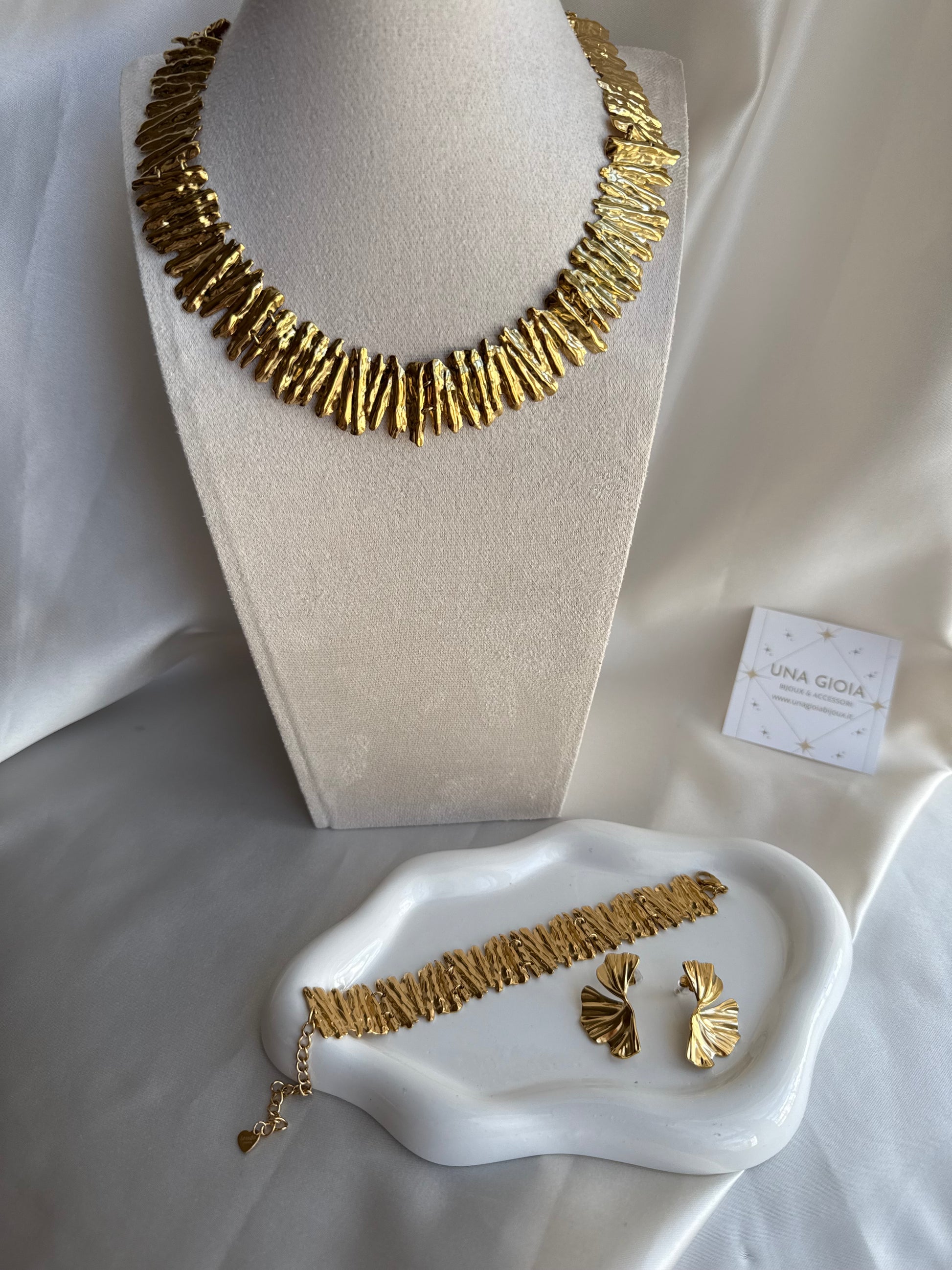 Collana semi rigida bracciale e orecchini in acciaio inox