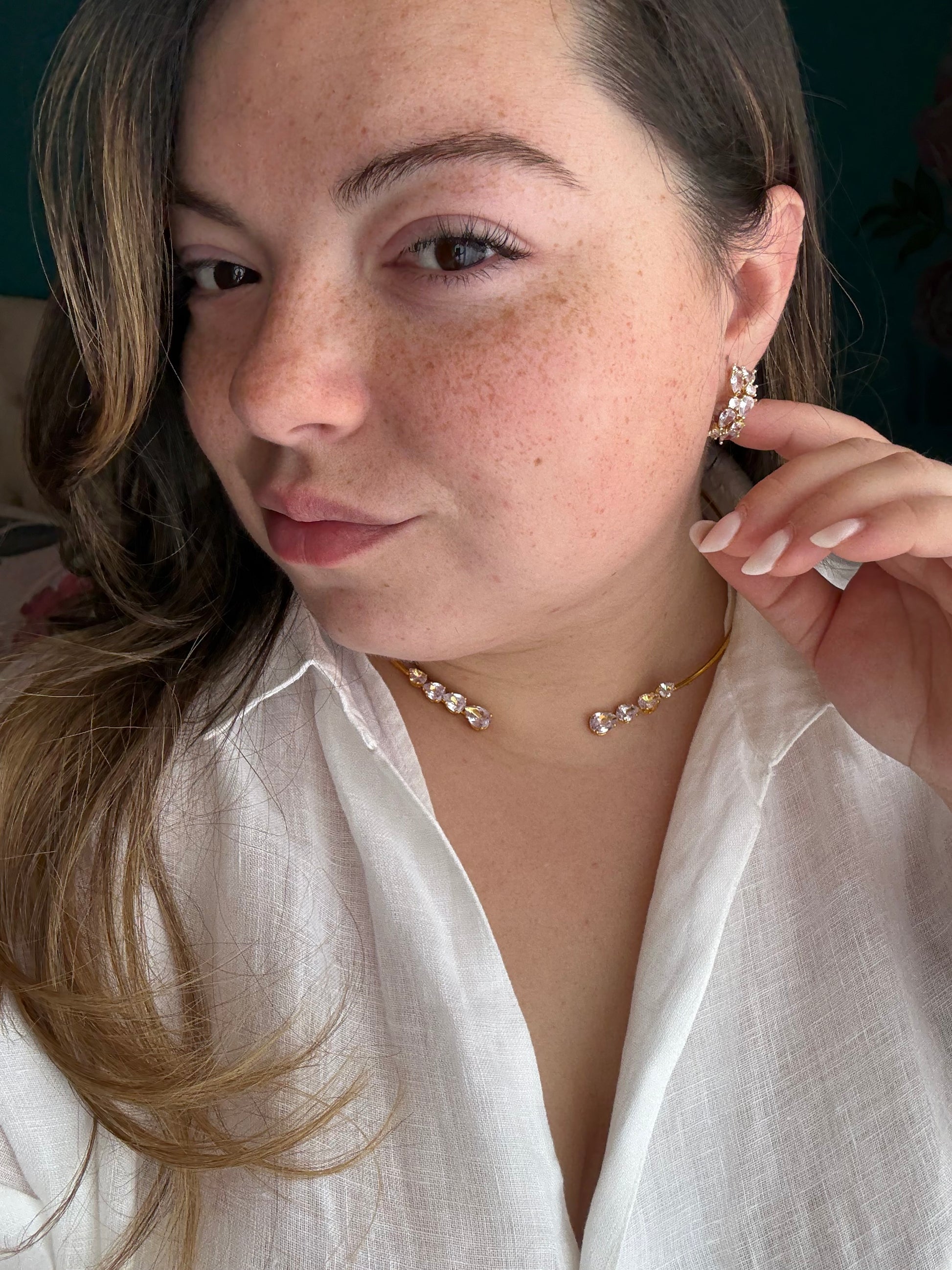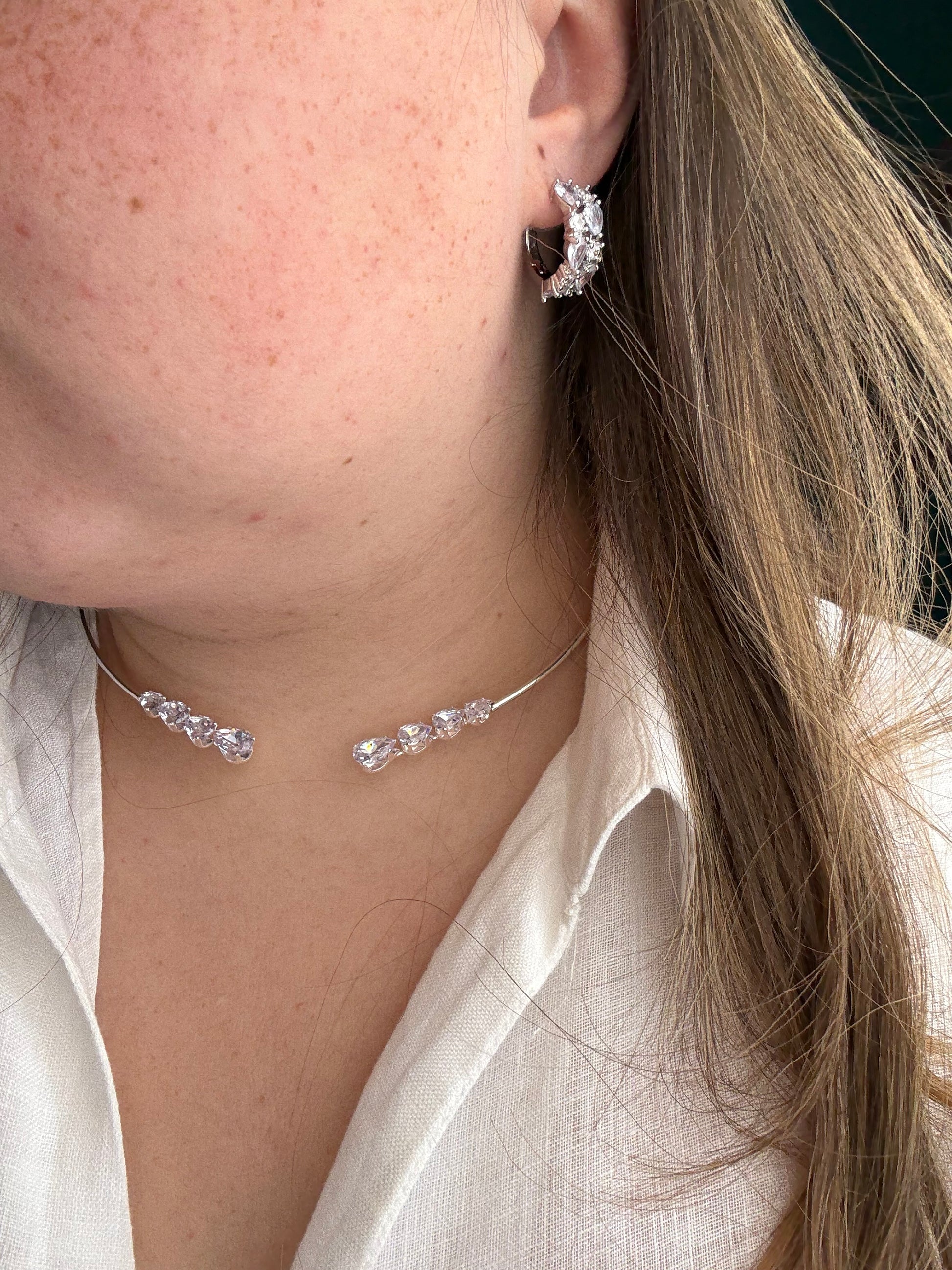 collana rigida in acciaio inox e zirconi più orecchini in argento 925 e zirconi